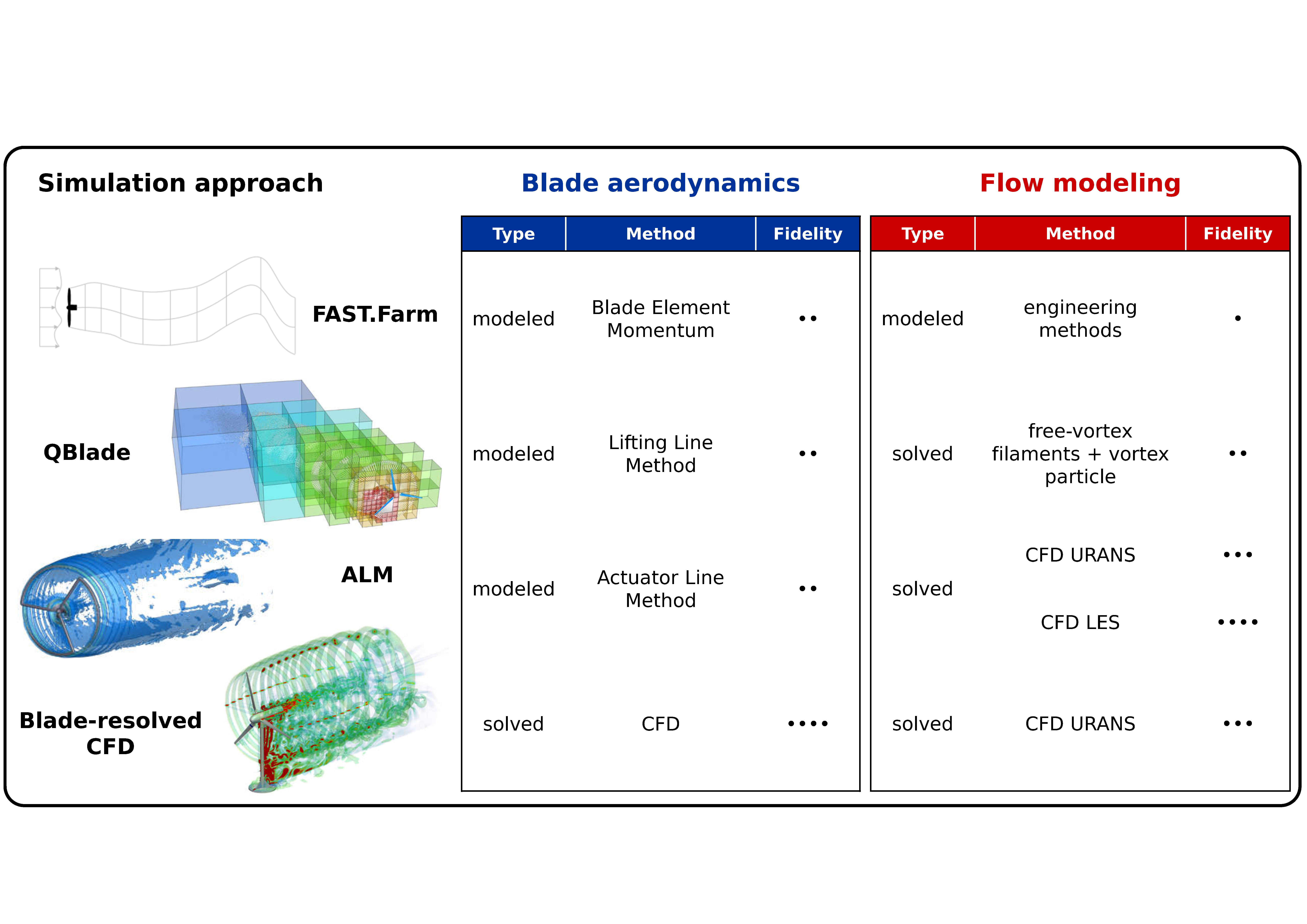 Ideally, this project will also help define appropriate guidelines for the set-up of medium and low fidelity engineering models, with great impact on FOWT design and optimization. The numerical methods employed will span from lower fidelity approaches, like Blade Element Momentum (BEM) and Lifting Line methods, up to blade-resolved CFD simulations, providing further insight into the physics governing the aerodynamic